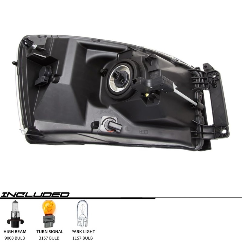 EPIC LIGHTING OE Spec Halogen Headlight BLK-H Assembly Replacement for DGE 2006 RAM 1500 2500 3500 [ CH2518115 55372815AB ] Left Driver Side