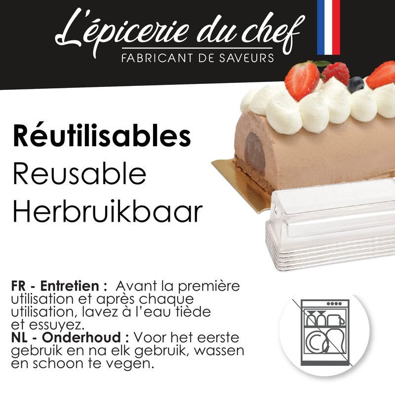 • 5 reusable moulds measure 31 x 6 x 3 cm