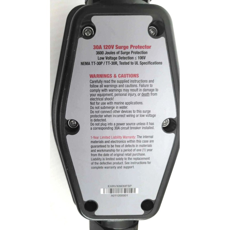 - 30 amp RV Surge Protector 120V 3600 Joules of Surge Protection. NEMA: TT-30P /TT-30R