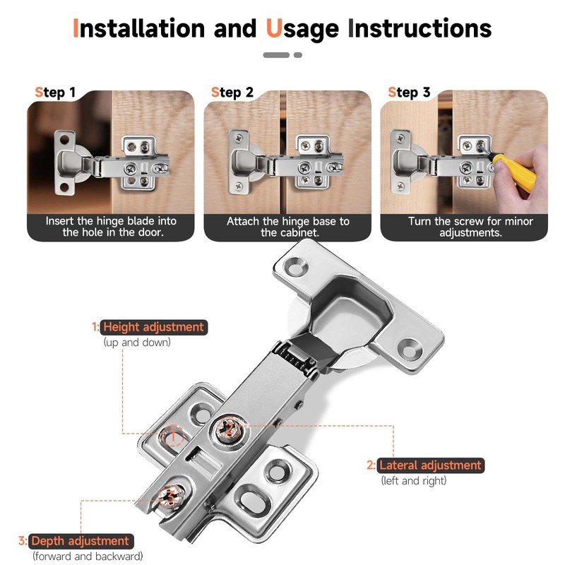 ePicsoa furniture cabinet hinges, hinges for cabinet doors, hinges foldable, door hinges, furniture hinges, cabinet hinges, door hinge, cabinet door hinge, door hinge set, soft close hinge, simple and practical, soft closing hinges with integrated dampers can transform your old kitchen cabinets into new ones and ensure that the furniture doors close quietly and slowly.