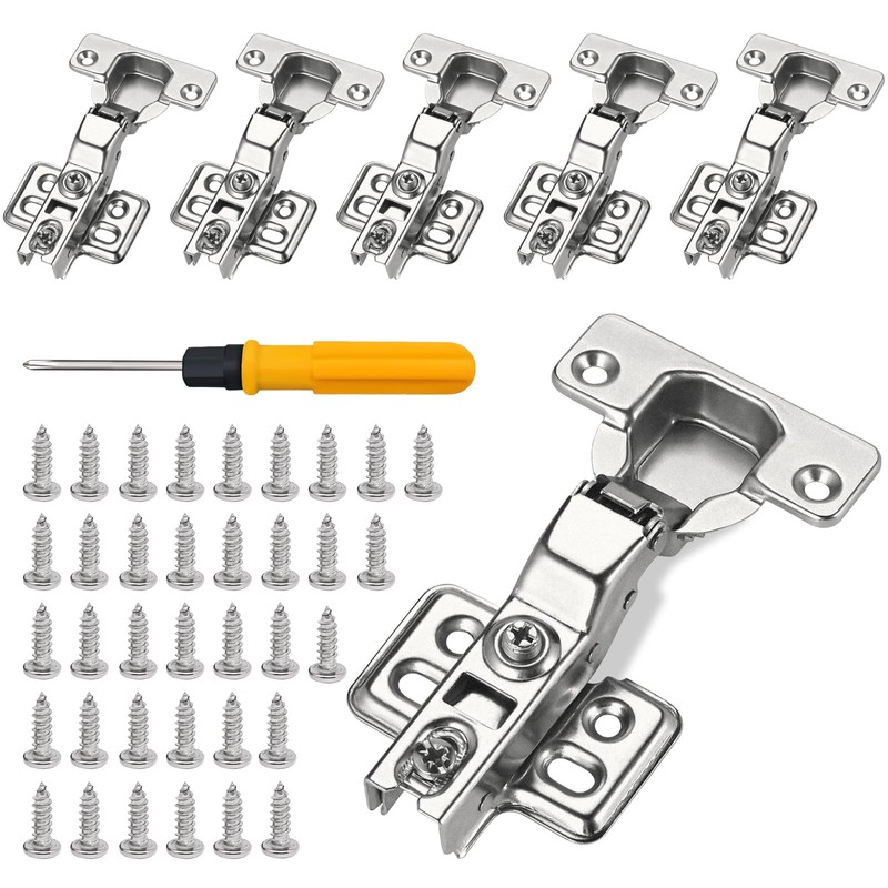 - Product configuration: The furniture hinge set includes 6 semi-curved hinges, 36 galvanised fixings and 1 double head screwdriver. Each concealed hinge must be fixed with 6 screws.