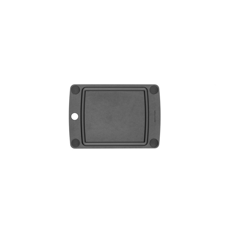 Epicurean is a way of life-a reflection of our personal values and those of our customers. Every Epicurean cutting board and kitchen accessory is made with naturally renewable materials in an environmentally responsible way. Our products are well-designed, practical, casual tools that feel at home in any kitchen. Today, Epicurean cutting boards, kitchen tools and utensils are at the center of everyday life for both the casual cooks and seasoned gourmets. We pride ourselves on original designs that are simple, functional and beyond trend. Every Epicurean product is made in the U. S. A. , creating good jobs and strengthening the economy. Our cutting boards and tools get their natural look and texture from our exclusive material called Richlite, a paper Composite which is non-porous, dishwasher safe, durable and easy on knives. It has been used in commercial kitchen and restaurants for over 75 years and meets the highest standards of cooks and chefs worldwide. The Epicurean all- in-one boards feature the best features of our most popular boards and combine them into 1 board: non-slip feet, A generous juice groove, thin profile and lightweight. This board measures 10" X 7" X 1/4" Thick and features black silicone dots for stability and a slate color.
