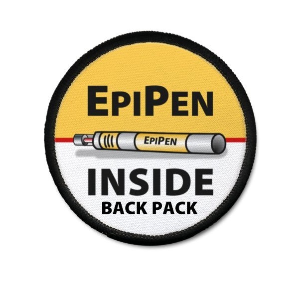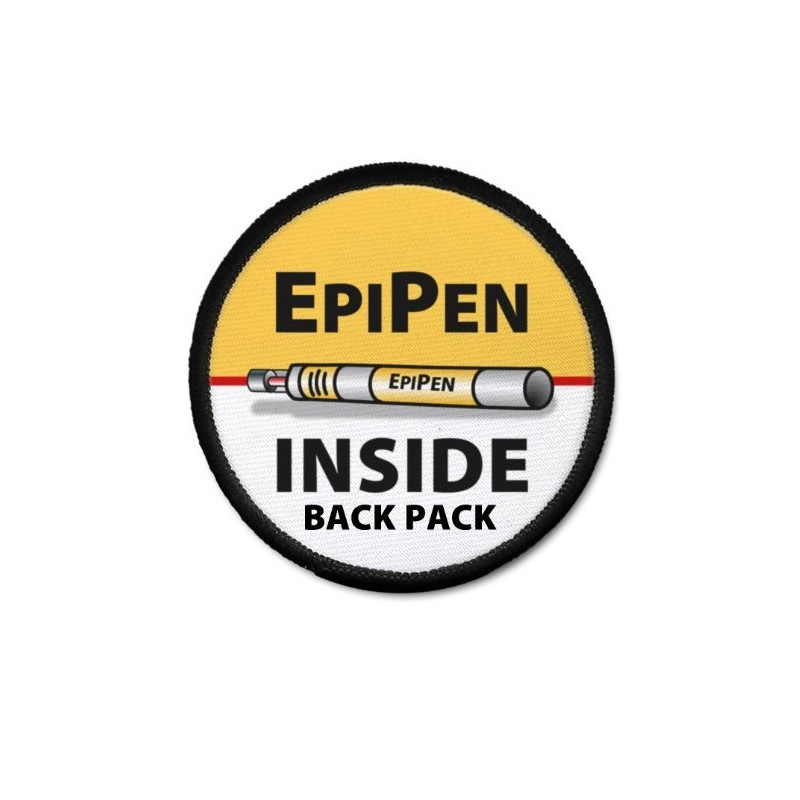 EPIPEN INSIDE Back Pack Medical Alert Symbol 2.5 inch Black Rim Sew-on Patch
