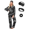 - Complete 5 - Piece Ensemble: The 5 pcs womens print floral Pajamas Set isn't just an ordinary pajama set. It includes a long sleeve top, matching bottoms, a sleep - enhancing eye mask, a practical hair - tie, and a trendy hair ring. The eye mask helps block out light for a more restful sleep, while the hair - tie and scrunchie keep your hair neatly in place