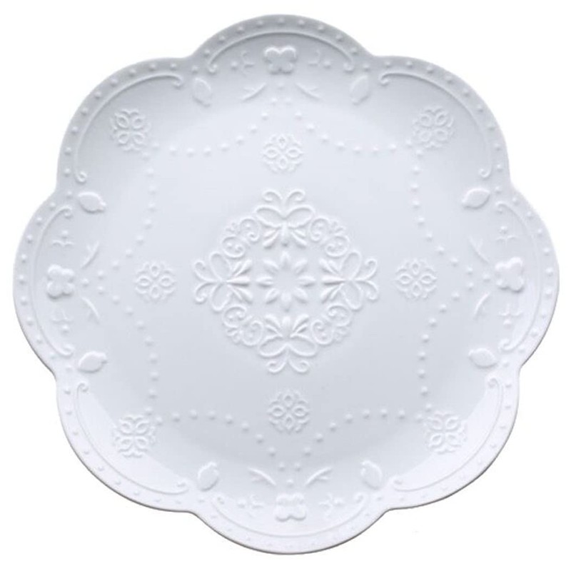Eplze YBK Tech Elegant Round Embossed Lace Plate, Ceramic Serving Plate for Breakfast Afternoon Tea (White, 6-inch)