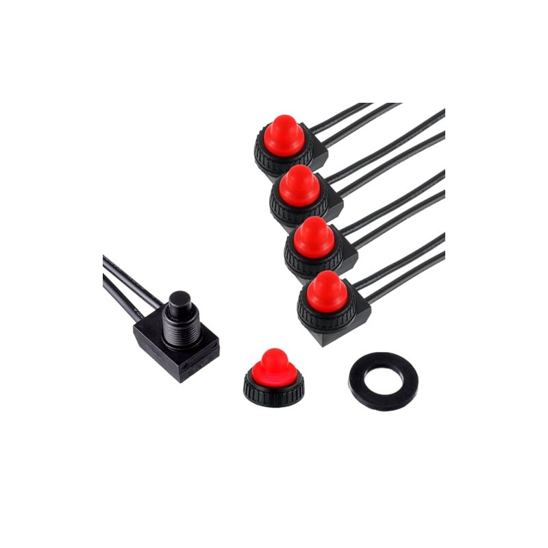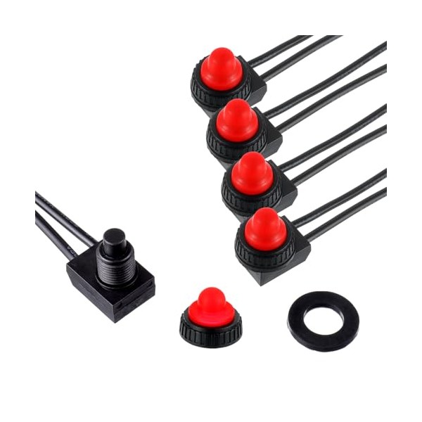 EPLZON EPLZON KP-107 Waterproof Push Button Switch 12V ON/Off SPST Switch with 4.5'Lines for Motorcycle/Car(Pack of 5pcs,Red)