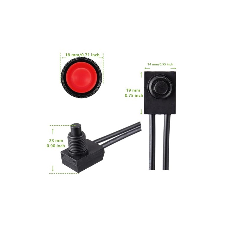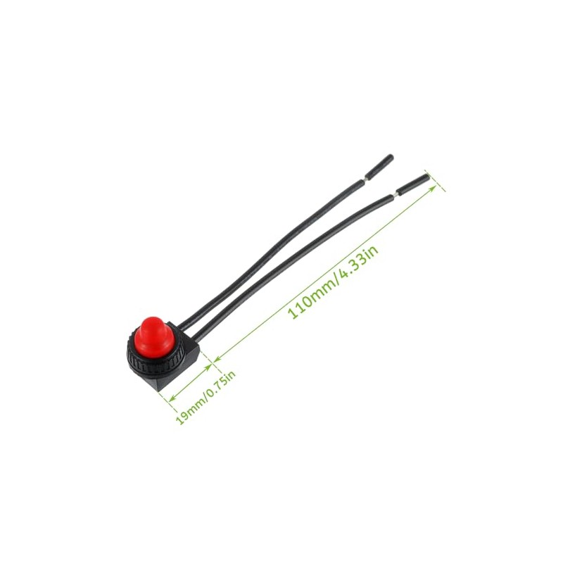 EPLZON KP-107 Waterproof Push Button Switch with 4.5' LinesSpecifications:Name: Waterproof switch KP107ColorRedRated power: 3A 250Vac/ 6A 125VacMaterial: Rubber case, wooden base, made of high quality copper switch contactsOperation mode: self-lockingContact structure: normally ON/normally OFF/ON-OFF,SPST switchWorking voltage: 250 (V)Working current: 3 (A)Rated heating current: 6 (A)Contact resistance: 50 ()Insulation resistance: 100 (M)Mechanical life: 10000 (times)Package Contents:5pcs*Waterproof switch5pcs*Gaskets5pcs*Waterproof capNote:The switch is not designed for heavy marine use or to be submersed under water
