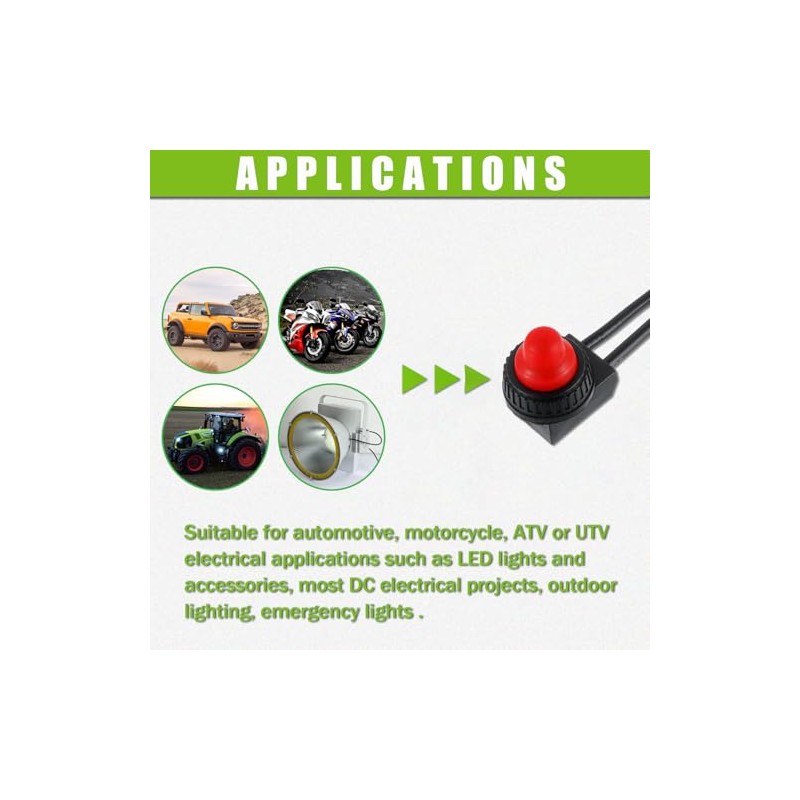 - Applications: Suitable for automotive, motorcycle, ATV or UTV electrical applications such as LED lights and accessories, most DC electrical projects, outdoor lighting, emergency lights