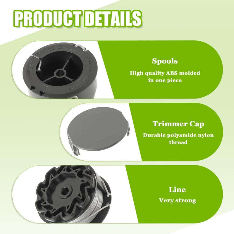 • Packing List:6 x F016800570 Replacement Trimmer Spool, 2 x 1600A01R5J Trimmer Cover Spool specifications: line length: 6m/19.7ft, diameter: 1.6mm/0.06inch