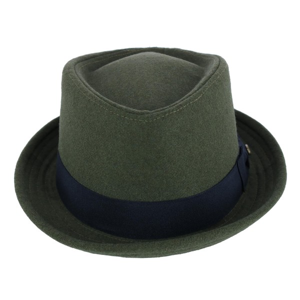Epoch hats company Men's Diamond Shape Wool Fedora with Grosgrain Hatband, Olive, Medium
