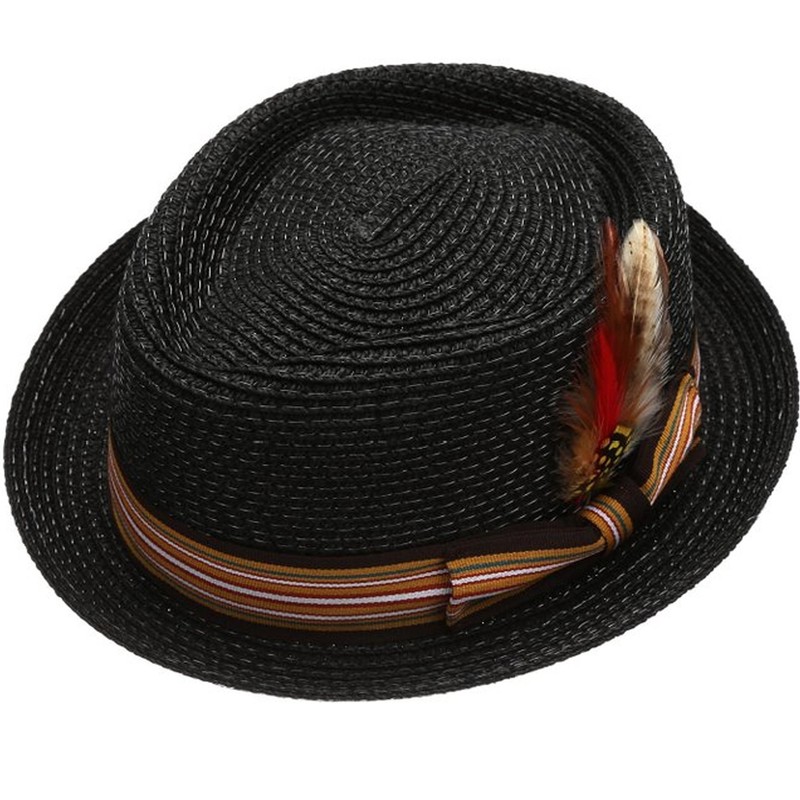 EPOCH HATS Men's Premium Straw Porkpie Fedora Hat (S/M, BLACK)