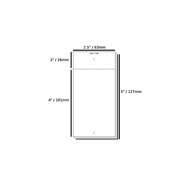 - Approximate Dimensions: 2.5" x 5" (4" tear out) / 63mm x 127mm (101mm tear out)