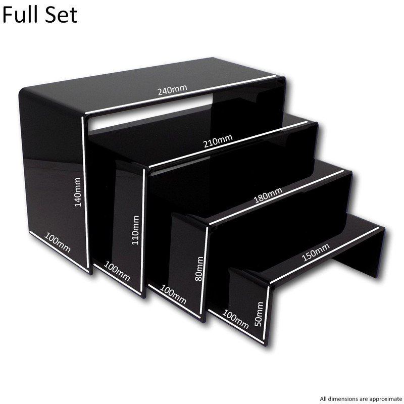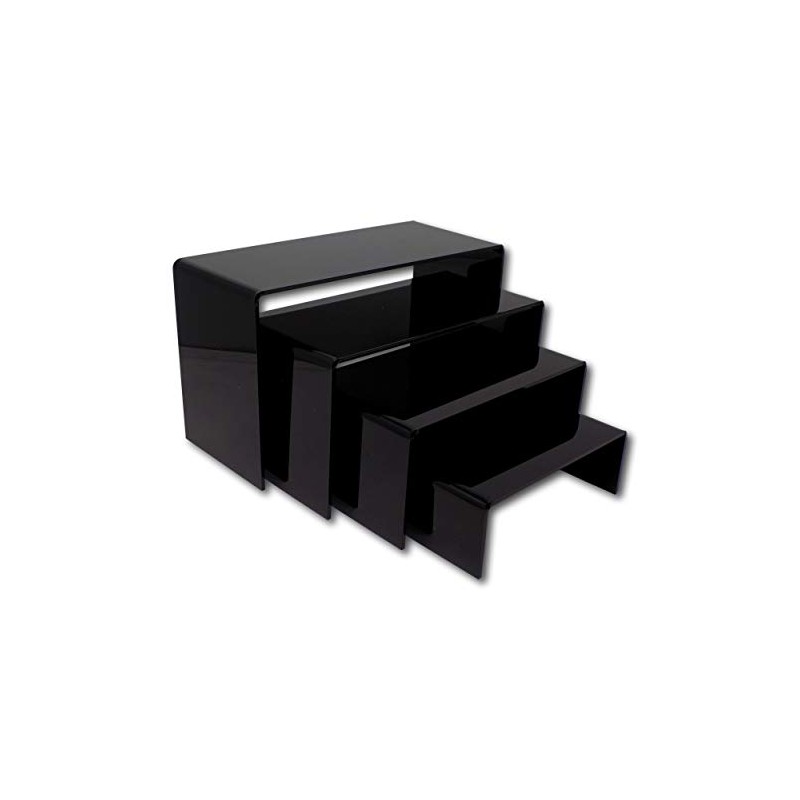 EPOSGEAR Nesting Plinths Clear or Coloured Acrylic Plastic Retail Riser Tiered Counter Display Stands - Perfect for Shops, Stalls, Ornaments, Models etc (Black, Full Set of 4 Stands)