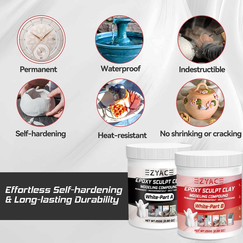 - Effortless Self-hardening & Long-lasting Durability: Simply let epoxy clay for sculpting sit at room temperature for a few hours, and it cures into a durable, strong material that resists shrinkage and cracking. Plus, it's heat, water, & moisture-resistant.