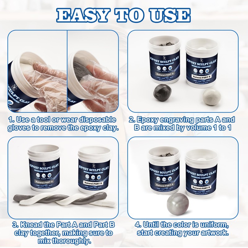Seocam Epoxy Putty Sculpt Clay, 2 Part A & B for Sculpting, Modeling, Building, and Repairing, 1 Pound, Natural