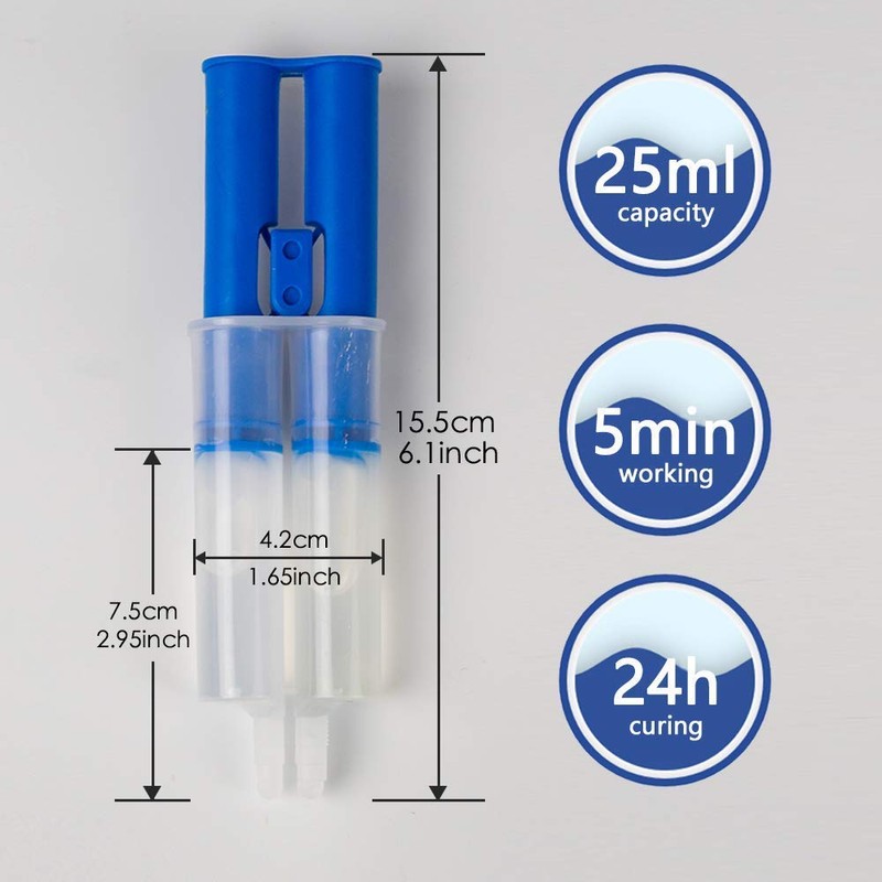 - ✔5 minutes working time, 24 hours curing time, waterproof, sandable, paintable.