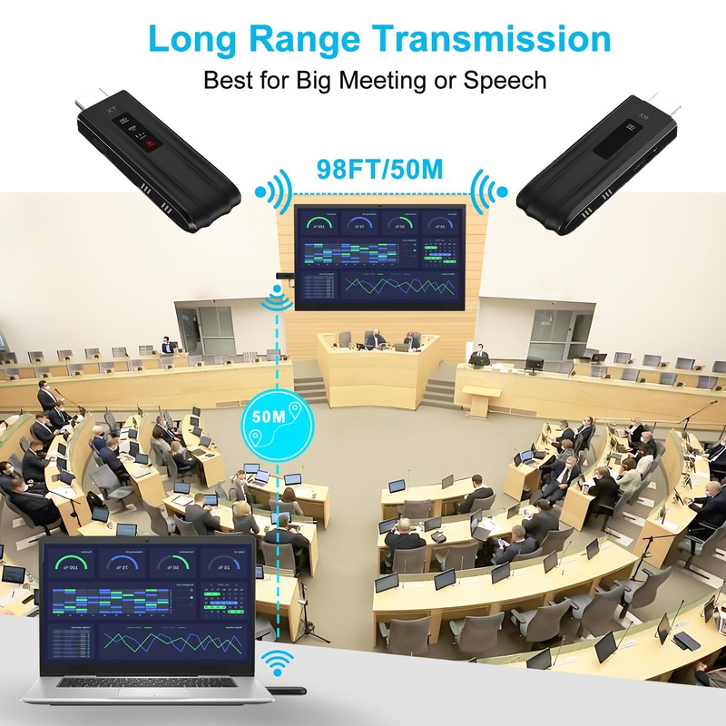 - 【High-Quality HDMI Wireless Transmission】The wireless HDMI transmitter and receiver transmission standard technology makes transmission efficiency faster and more stable.It only 129ms Latency(almost real-time). the wireless HDMI transmitter receiver kit up to 164ft/50m between laptop and connected display.