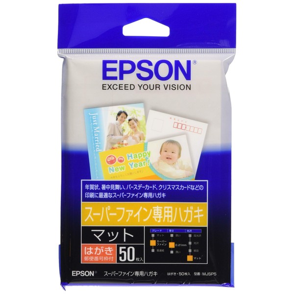 Epson Super Fine Postcard (3.9 x 5.8 inches (100 x 148 mm) Postcards, 50 Sheets MJSP5