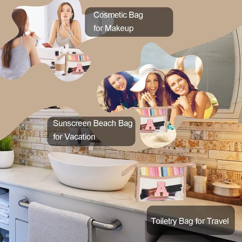 - Clear Makeup Bags with Zipper -Initial makeup bag designed with transparency,the travel bag allows you to quickly locate and retrieve your desired items.stuff bag is equipped with a smooth metal zipper without rusting.Whether you're at home or travel, this spf bag is the perfect companion,also can be beach must haves and travel must haves