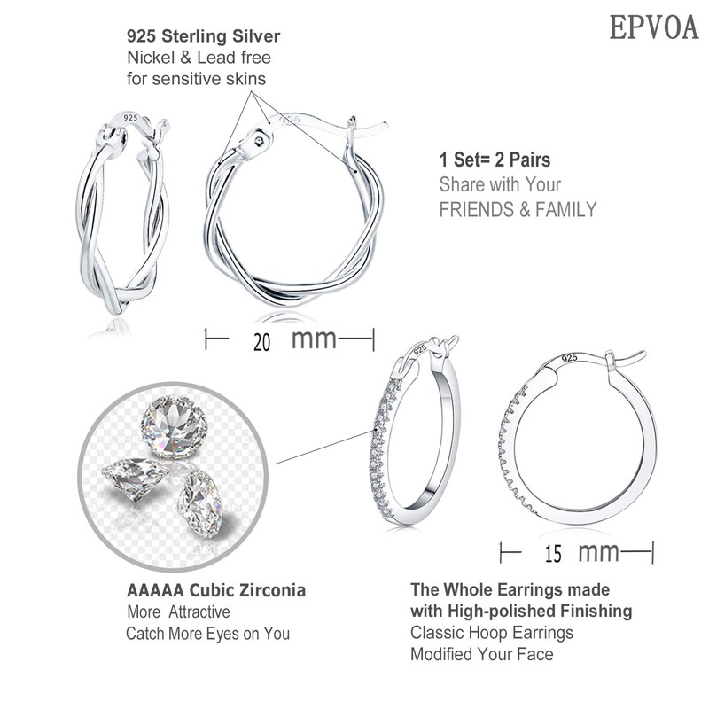 - 【High Quality Material】: This Sliver Hoops Earrins Set is made of 925 Sterling Silver + White Gold Plated. The Whole Earrings are High-polished, made with good design & flexible clasp. Its unfading and safe materials give you a feeling of lasting freshness.