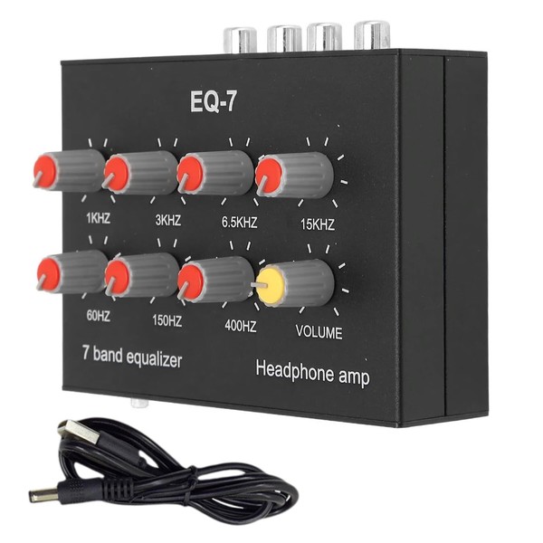 EQ 7 Band Sound Equalizer Home Audio, 2 Channel Stereo Equalizer for Home Audio, 3.5mm Interface Digital Headphone Equalizer, 12dB High Bass Adjustment