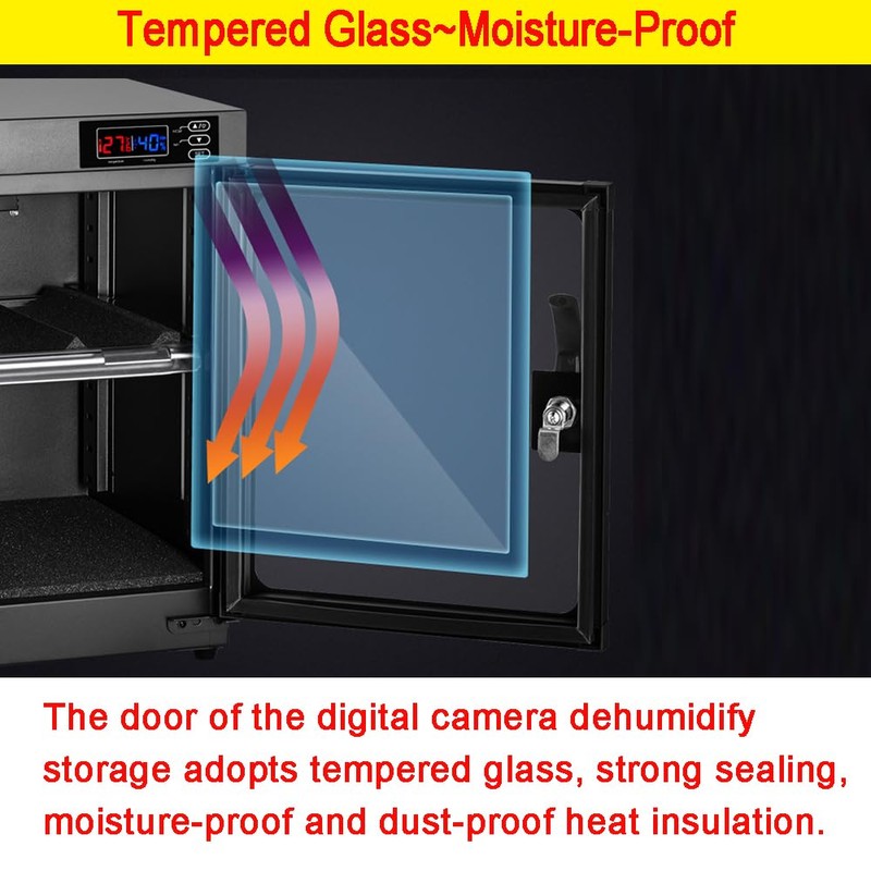 - 【Good Moisture Resistance】The door of the digital camera dehumidify storage adopts tempered glass, strong sealing, moisture-proof and dust-proof heat insulation, and the widened seal seal does not enter the tide. It has good moisture resistance.