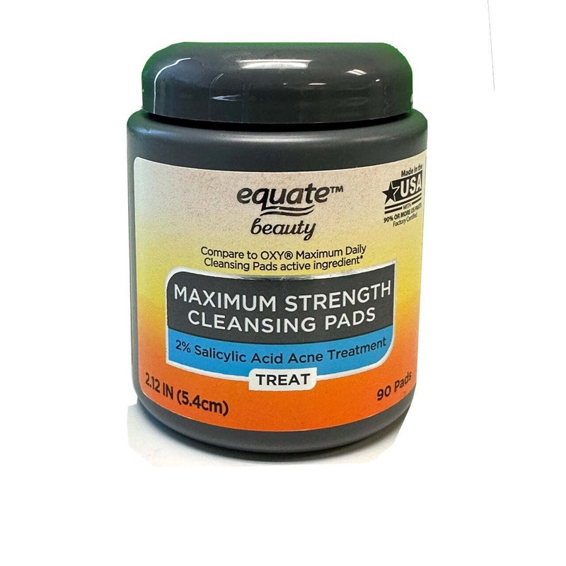 • Equate Beauty Maximum Strength Cleansing Pads: 2% salicylic acid acne treatment.