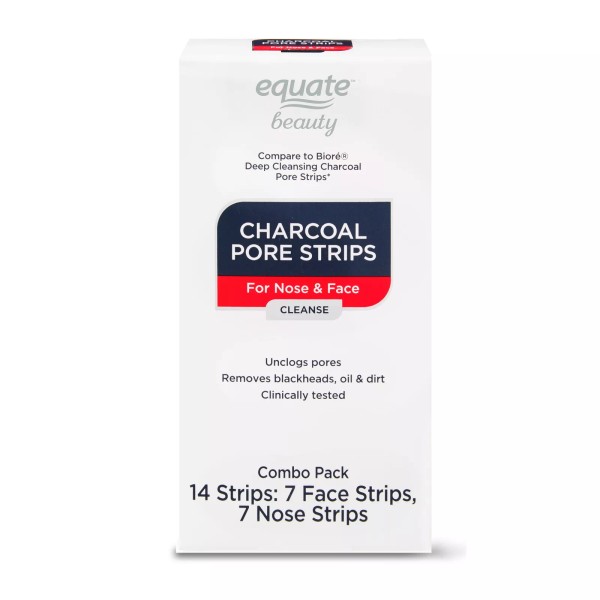Equate Beauty Charcoal Pore Strips for Nose & Face Combo Pack, 14 Count