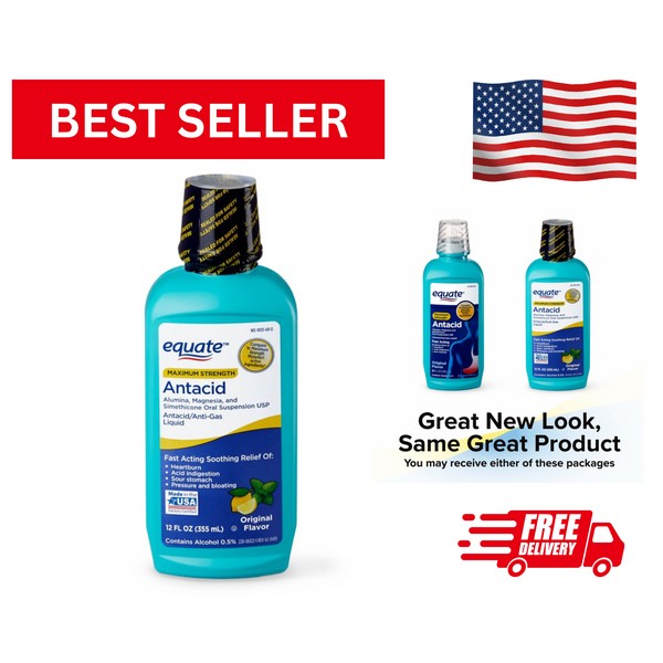 Equate Maximum Strength Antacid over-the-Counter Original Flavor Liquid, 12 fl. oz. (1Pack)