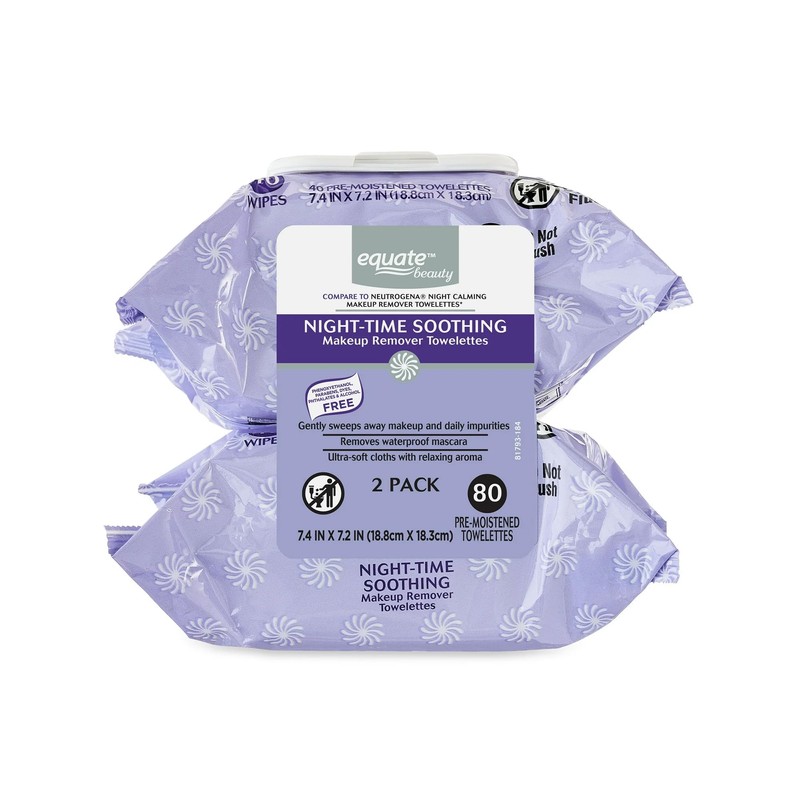 - Equate Beauty Night-Time Soothing Makeup Remover Wipes, 40 count, 2 Pack