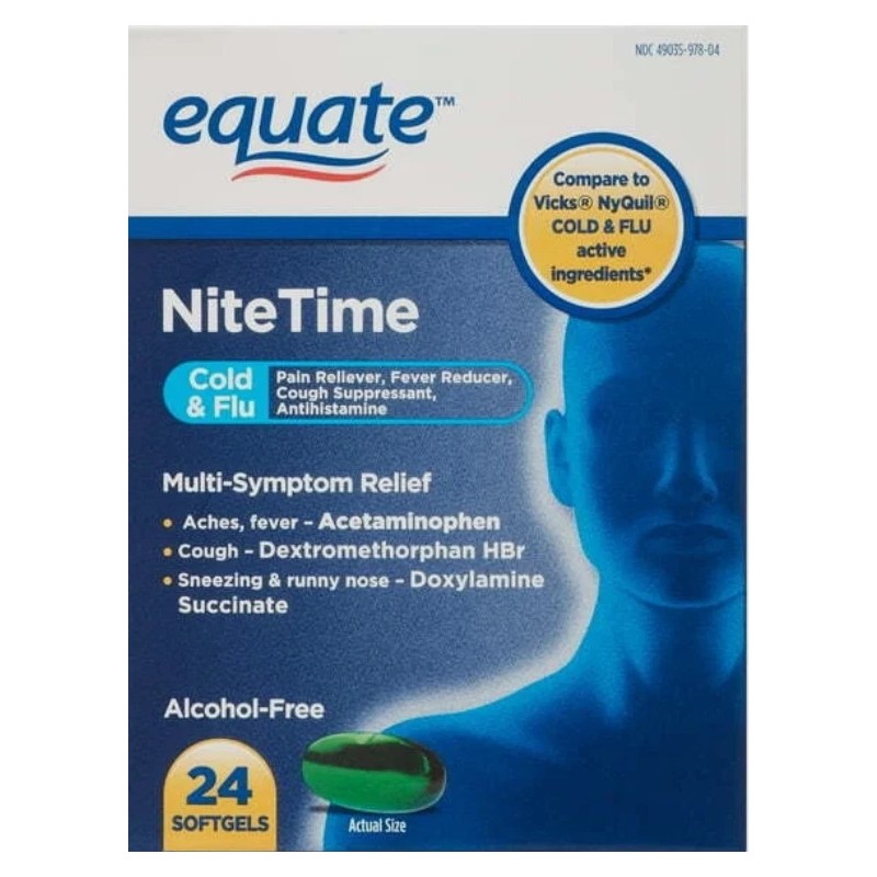 Equate NiteTime Cold & Flu Multi-Symptom Relief, 24 Count