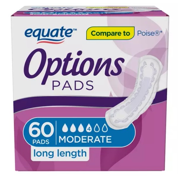 Equate Options 2 PACK!! Equate Options Incontinence Pads for Women, Long Length (120 TOTAL)!!