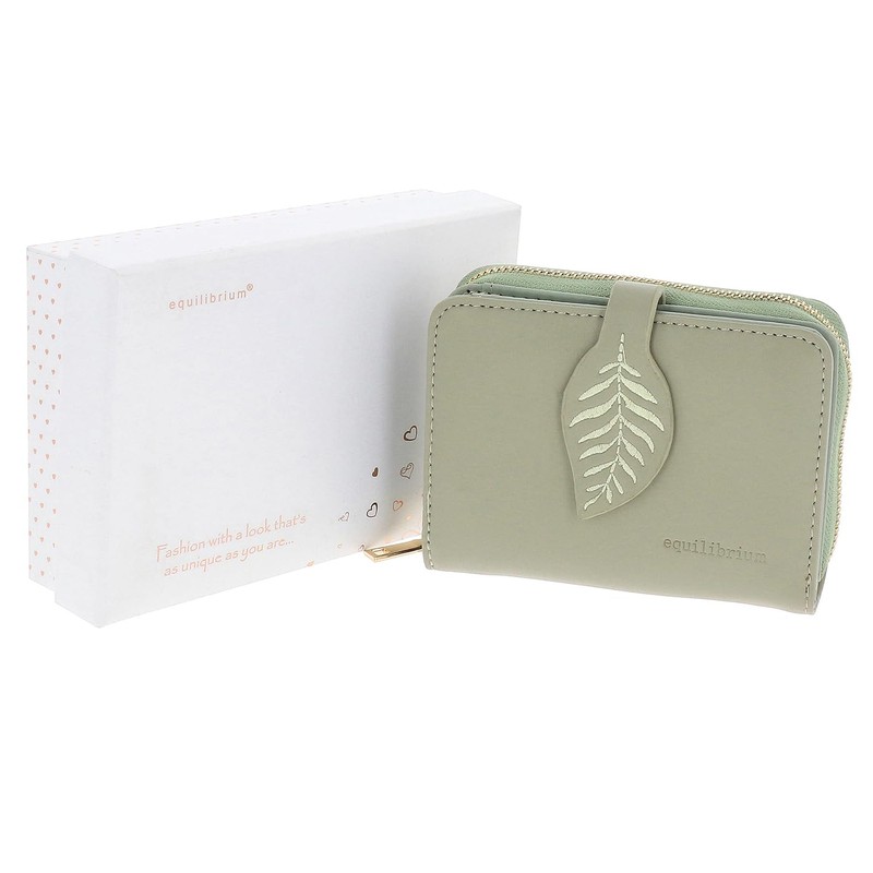Equilibrium Embroidered Leaf Zip Around Closure RFID Blocker Purse for Cards and Cash Multi Compartment - Grey, Sage or Black Designs (Sage)