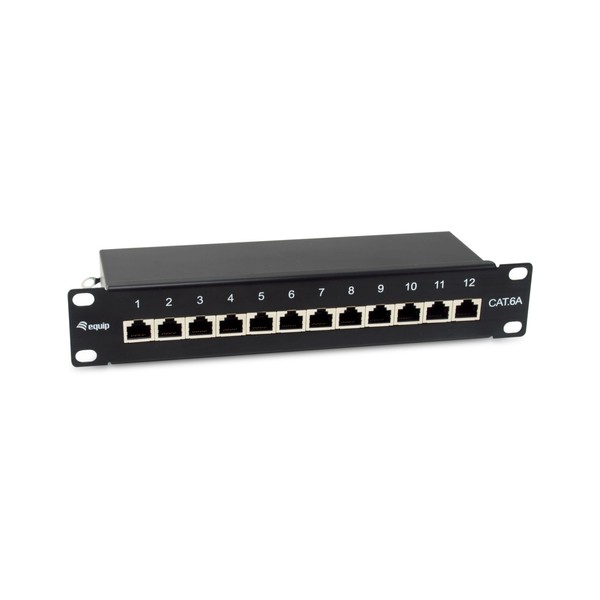 Equip 326623 12-Port Cat.6A Shielded Patch Panel, 10", Black