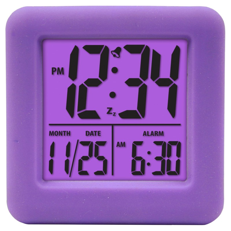 Equity 70912 Digital Purple Silicone Cube Alarm Clock with On-Demand Backlight
