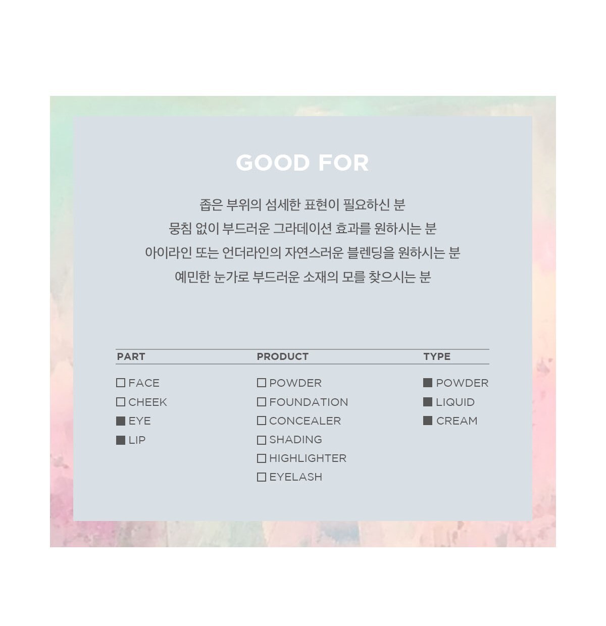 This handmade product completed processing of artificial hair for dozens of times to make extremely soft vegan hair that is even better than any other premium hair products. This coated brush is suitable to apply liquid, cream, and powder formula. Provides even pigmentation even after multiple application. Suitable to apply point makeup.