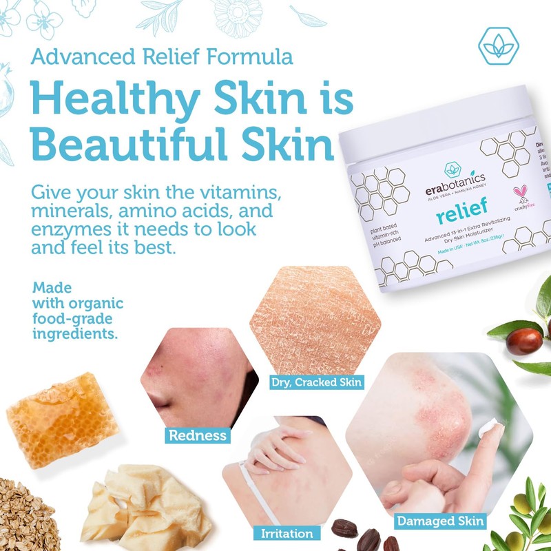 Era Organics Eczema, Psoriasis & Dermatitis Moisturizer Cream - Advanced 13-in-1 Non-Greasy Face or Body Lotion for Dry, Itchy Skin, Aloe Vera, Manuka Honey, More 8oz