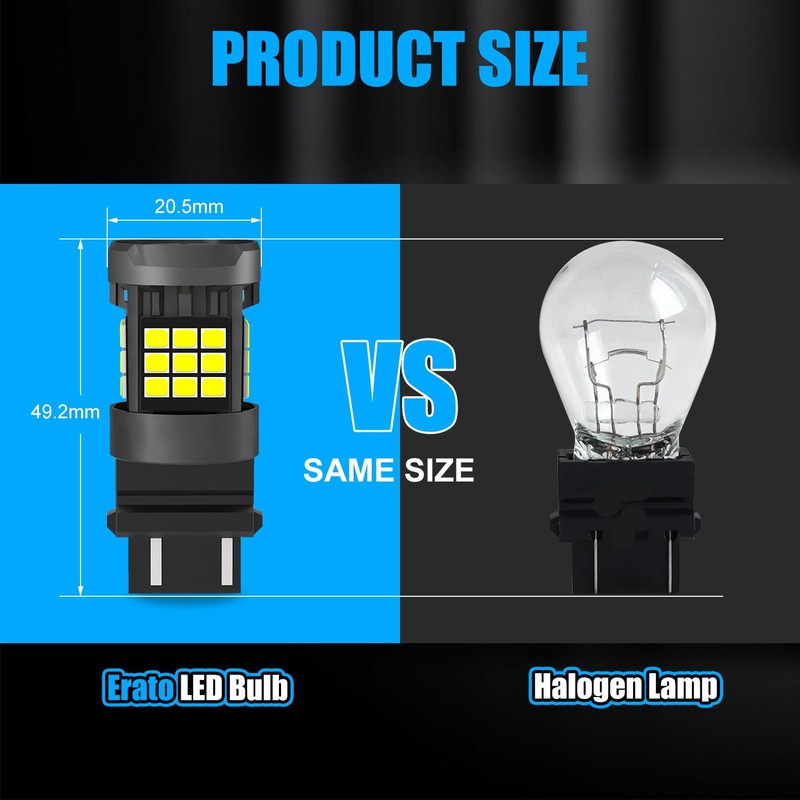 - Efficiency & Heat Dissipation: Experience Erato's 3157 LED Bulbs – engineered with a top-mounted turbo fan for efficient cooling. Enjoy a remarkable 50,000-hour lifespan, minimizing replacements and ensuring continuous, reliable lighting. Elevate your driving with unwavering brightness and efficiency.