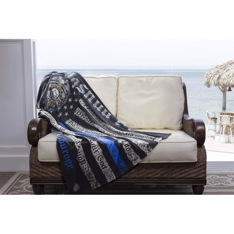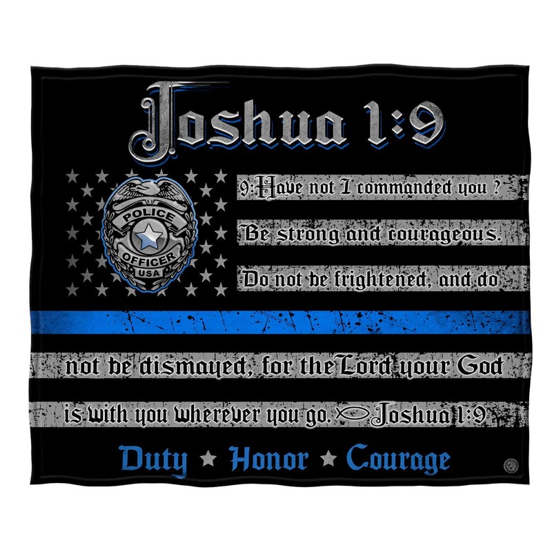 Erazor Bits Religious Police Blanket, Johsua 1:9 Thin Blue Line Throw Blanket, Religious Cover, Cozy Law Enforcement Bed Spread, FF2490 (50" x 60")
