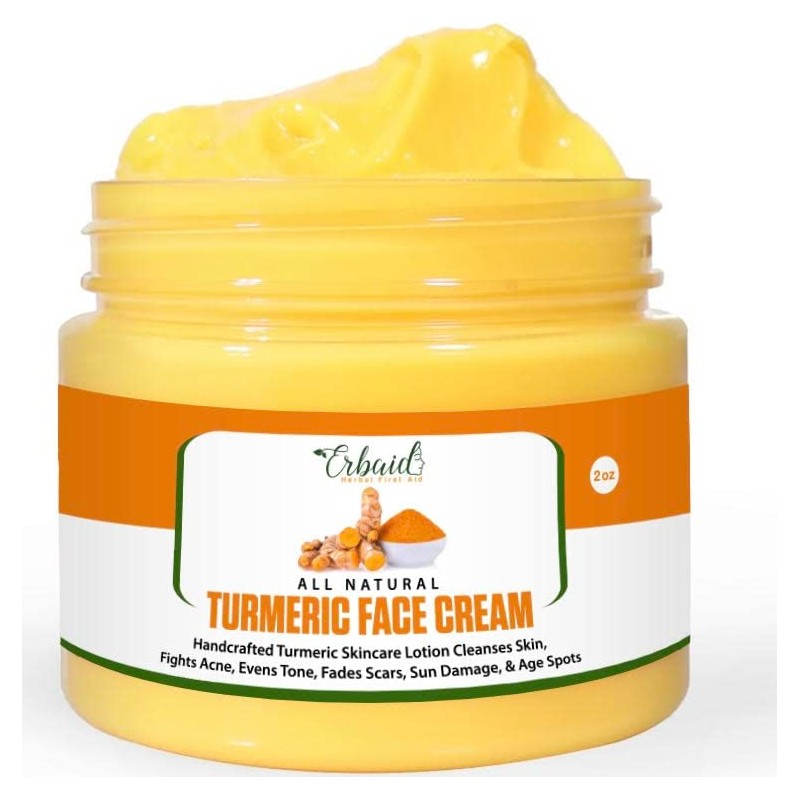 Erbaid Turmeric Face Cream for Face & Body - All Natural Turmeric Skin Brightening Lotion - Turmeric Cleanses Skin, Fights Acne, Evens Tone, Fades Scars, Sun Damage, & Age Spots - Pure Handcrafted Turmeric Healing Skincare Made in the USA 2 Oz
