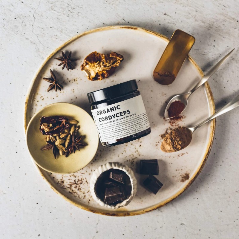 Erbology Organic Cordyceps Mushroom Powder 50 Servings - 48% Beta-glucans - Energy and Performance - Cordyceps Sinensis - Small Batch - Sustainably Grown in Europe - Vegan - Non-GMO - No Added Fillers