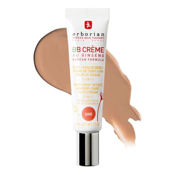 Crema BB Erborian con ginseng, bronceado (Dore) - Cobertura ligera y edificable con SPF 20 y acabado mate ultrasuave que minimiza los poros y las imperfecciones - Cuidado de la piel facial coreano - 0.5 oz