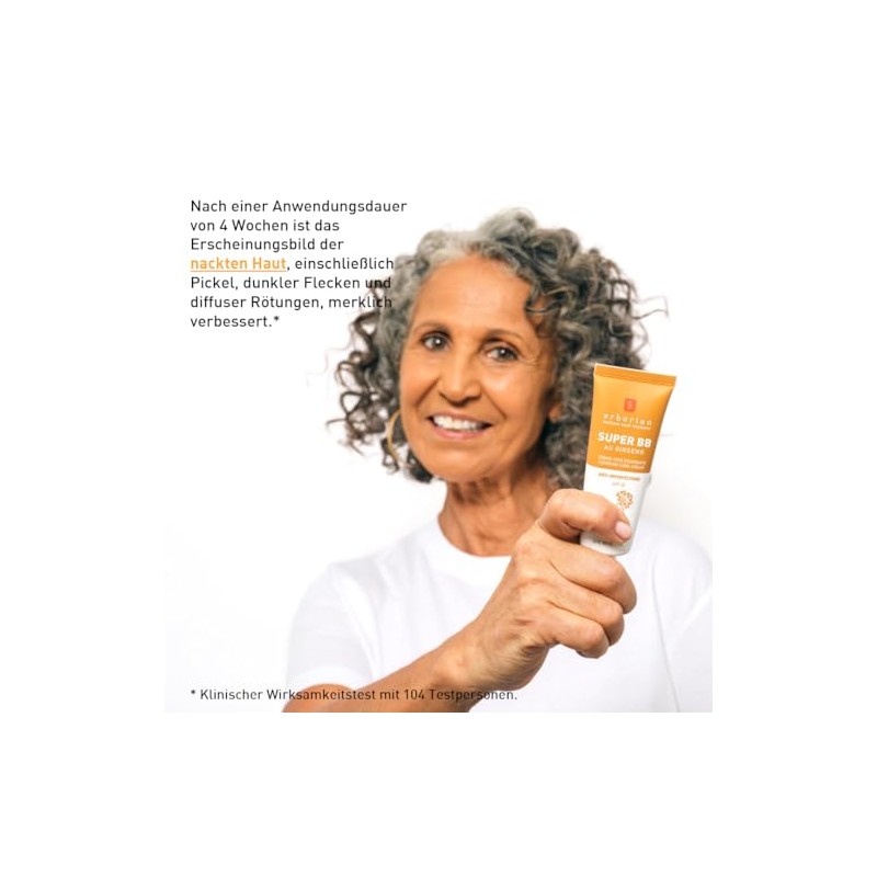 Product DescriptionErborian, the Korean skincare brand, creates innovative and effective products that enrich your daily routine while ensuring you get the most out of your skin - all in the fewest steps possible - from morning moisturizer to evening cleansing and everything in between. At Erborian, we want to offer you unique and easy-to-use products that always put you and your skin first. We've developed hybrid products that perfectly combine skincare and makeup, like our iconic BB and CC creams. All of our ingredients are carefully selected to ensure the best for your skin - at every step of your routine. We're so confident in our Korean super ingredients that we've given them a special place in our bottle. This innovative Super BB cream is the perfect combination of skin care and makeup. It conceals imperfections and evens out your skin tone without feeling heavy on the skin. This powerful day cream contains white and fermented ginseng flowers to hydrate and smooth your skin. Niacinamide reduces the appearance of skin imperfections and ensures a velvety finish and an even complexion. Say goodbye to heavy make-up and say hello to natural, flawless skin.General informationCovering care cream against skin imperfections.Ingredients / IngredientsAQUA/WATER - CI 77891/TITANIUM DIOXIDE - DIMETHICONE - COCO-CAPRYLATE/CAPRATE - NIACINAMIDE - HEXYL LAURATE - ZINC OXIDE - TITANIUM DIOXIDES - GLYCERIN - SIMMONDSIA CHINENSIS (JOJOBA) SEED OIL - LAURYL PEG-10 TRIS(TRIMETHYLSILOXY)SILYLETHYL DIMETHICONE - CAPRYLIC/CAPRIC TRIGLYCERIDE - BUTYLENE GLYCOL - SYNTHETIC FLUORPHLOGOPITE - DISILOXANE - CI 77492/IRON OXIDES - MAGNESIUM SULFATE - DISTEARDIMONIUM HECTORITE - METHYL TRIMETHICONE - EQUISETUM GIGANTEUM EXTRACT - GLYCYRRHIZA GLABRA (LICORICE) ROOT EXTRACT - KIGELIA AFRICANA FRUIT EXTRACT - DIOSCOREA VILLOSA (WILD YAM) ROOT EXTRACT - PANAX GINSENG ROOT EXTRACT - SACCHAROMYCES/PANAX GINSENG FLOWER FERMENT EXTRACT - BUTYLOCTYL SALICYLATE - POLYHYDROXYSTEARIC ACID - POLYGLYCERYL-4 DIISOSTEARATE/POLYHYDROXYSTEARATE/SEBACATE - TRIETHOXYCAPRYLYLSILANE - ALUMINA - STEARIC ACID - ALUMINUM HYDROXIDES - GLYCERYL CAPRYLATE - CAPRYLYL GLYCOL - DIMETHICONE/VINYL DIMETHICONE CROSSPOLYMER - PALMITIC ACID - ETHYLHEXYLGLYCERIN - BIOSACCHARIDE GUM-1 - ALCOHOL - TOCOPHEROL - TIN OXIDE - PERFUME/FRAGRANCE - HEXYL CINNAMAL - ALPHA- ISOMETHYL IONONE - LINALOOL - CITRONELLOL - CI 77499/IRON OXIDES - CI 77491/IRON OXIDESInstructions for useApply a small amount of the Super BB Cream, starting in the center of your face and blending outwards. Use after or instead of moisturizer as needed