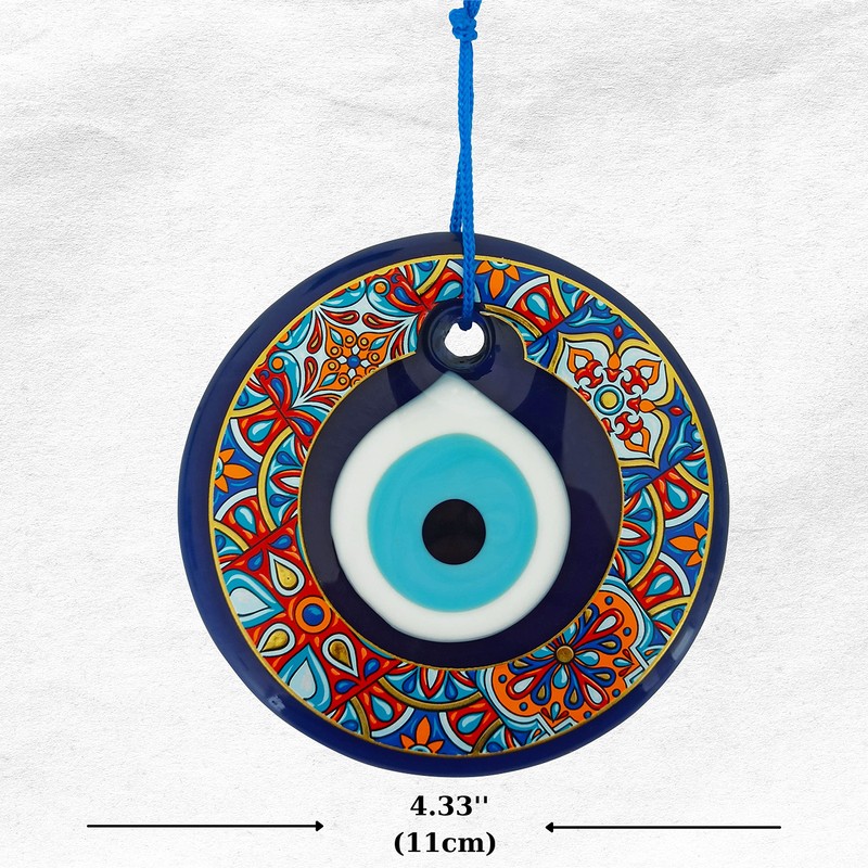 - Size & Color: Diameter 4.3'' (11cm). Evil eye bead is blue, white, red and yellow colors.
