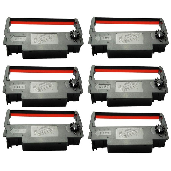 ERC 30 / 34 / 38 Ink Ribbon Cartridge Black and Red Compatible Epson TM 200, TMU 220, TMU230 Printers (6 Pack)