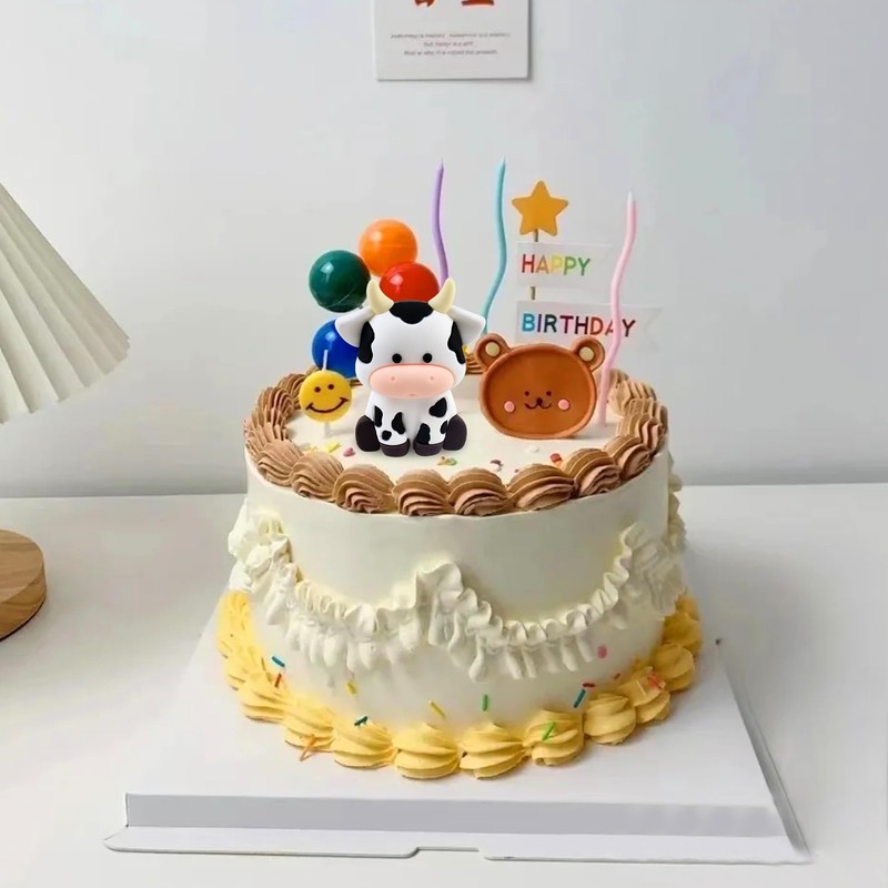 Ercadio - Paquete de 1 adornos de resina para cupcakes de vaca de resina, púas de magdalenas de animales de granja para decoración de tartas de cumpleaños