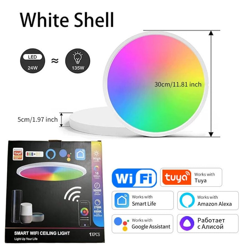 - App controllable voice control: this 2.4G WiFi ceiling light can be controlled via "Smart Life" or "Tuya" app. Mobile phones can be used as a remote control to control lights. In addition, the smart ceiling light can be easily used by voice commands after connecting to Alexa Google Home, simply turn the light on or off with a command and adjust the brightness
