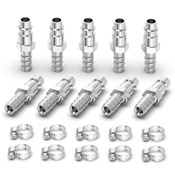 ERGAOBOY 10 Pcs Male Industrial Air Coupling and Plug Kit with 12MM Hose Barb, Flow Quick Connect Air Pneumatic Compressor Hose Fittings