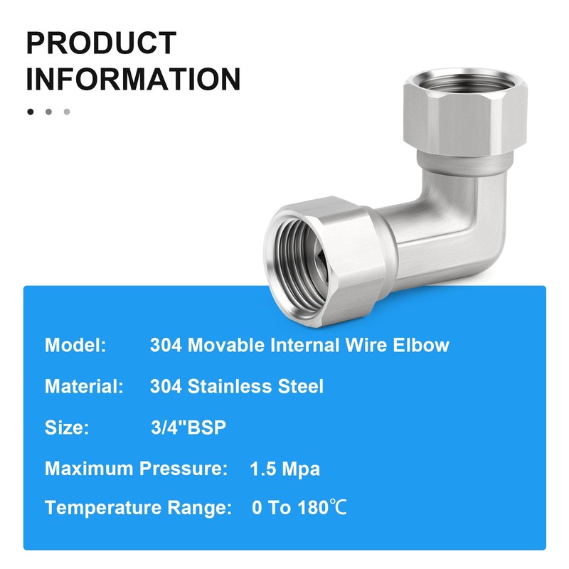 ERGAOBOY 2 Pcs 304 Stainless Steel 90 Degree Elbow 2 Ends Flexible Movable Connector, 3/4" Female Pipe Fittings for Sprayer, Angled Valve, Shower Arm