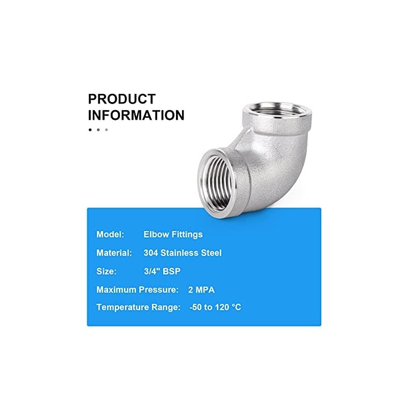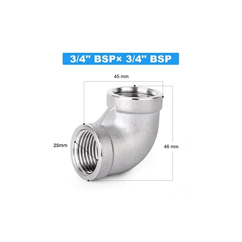 ERGAOBOY 2 PCS 304 Stainless Steel 90 Degree Elbow Fittings, 3/4" BSP Female Pipe to 3/4" BSP Female Pipe Fitting